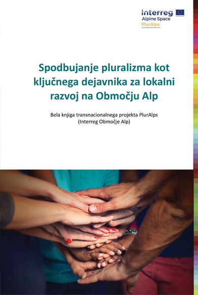 Publikacija "Spodbujanje pluralizma kot ključnega dejavnika za lokalni razvoj na Območju Alp - Bela knjiga" je eden od rezultatov transnacionalnega projekta PlurAlps: Priseljevanje, kulturna raznolikost in pluralizem kot priložnosti za območje Alp, ki je v letih 2016 – 2019 potekal v okviru programa INTERREG Območje Alp. Dokument vsebuje priporočila o tem, kako spodbujati uvajanje inovativnih ukrepov za jačanje pluralizma in pri obravnavi selitev / priseljevanja ter s tem izboljšati privlačnost prostora in okrepiti družbeno kohezijo v skupnostih na območju Alp. Priporočila so osredotočena na lokalno raven, vključno z občinami, medobčinskimi subjekti in mrežami ter pokrajinami. Namenjena so akterjem iz javne uprave, poslovnega sektorja in civilne družbe, ki delujejo na različnih ravneh (lokalni, regionalni, nacionalni in nadnacionalni) in spodbujajo socialne, kulturne in gospodarske inovacije ter podpirajo pluralizem in blaginjo na lokalni ravni. Cilj teh ukrepov je - skladno z načeli evropskega stebra socialnih pravic - vzpostaviti bolj vključujoče trge dela in bolj vključujoče družbe za lokalno in priseljeno prebivalstvo.